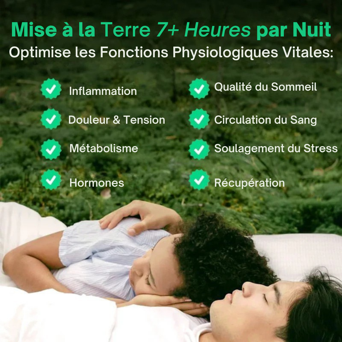 Profitez des incroyables bienfaits que la nature vous offre naturellement. Une mise à la terre prolongée est particulièrement bénéfique pendant le sommeil, lorsque votre corps subit ses processus de guérison et de régénération les plus critiques, vous laissant plus énergique et rajeuni que jamais.
