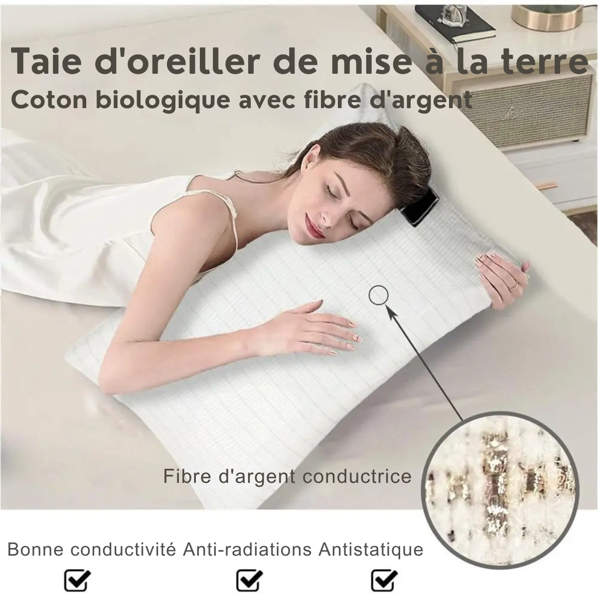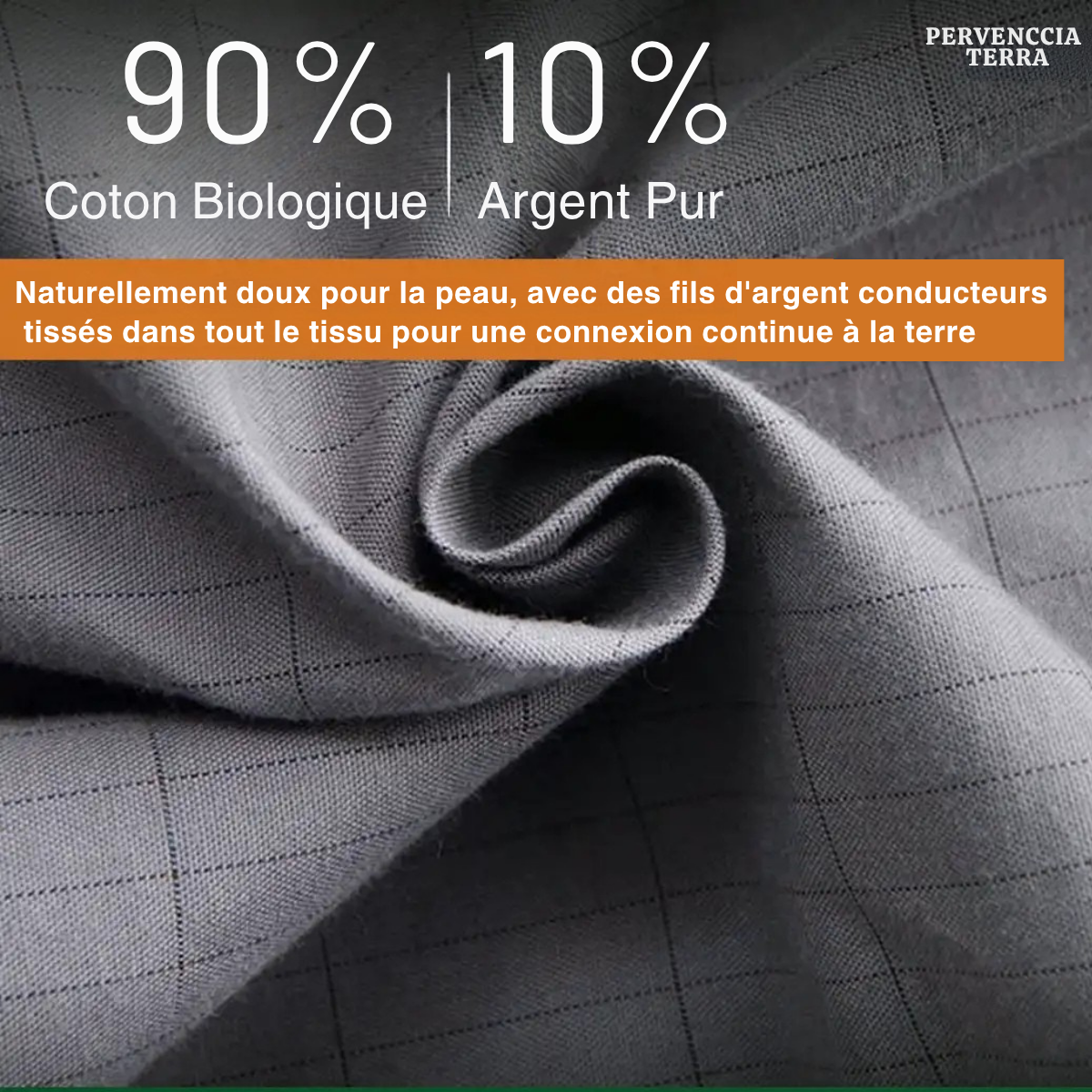 Le tissu de ce produit est conçu pour offrir confort, qualité et performance.Fabriqué à partir de 90 % de coton naturel et de 10 % de fibres d’argent conductrices, il allie douceur et technologie avancée. 🌿 Coton naturel : respirant, doux au toucher et agréable pour la peau, il garantit un confort optimal même lors d’une utilisation prolongée.⚡ Fibres d’argent conductrices : intégrées directement dans la trame du tissu, elles permettent de transférer naturellement la charge électrique du corps vers la terre, favorisant l’équilibre énergétique et la détente.